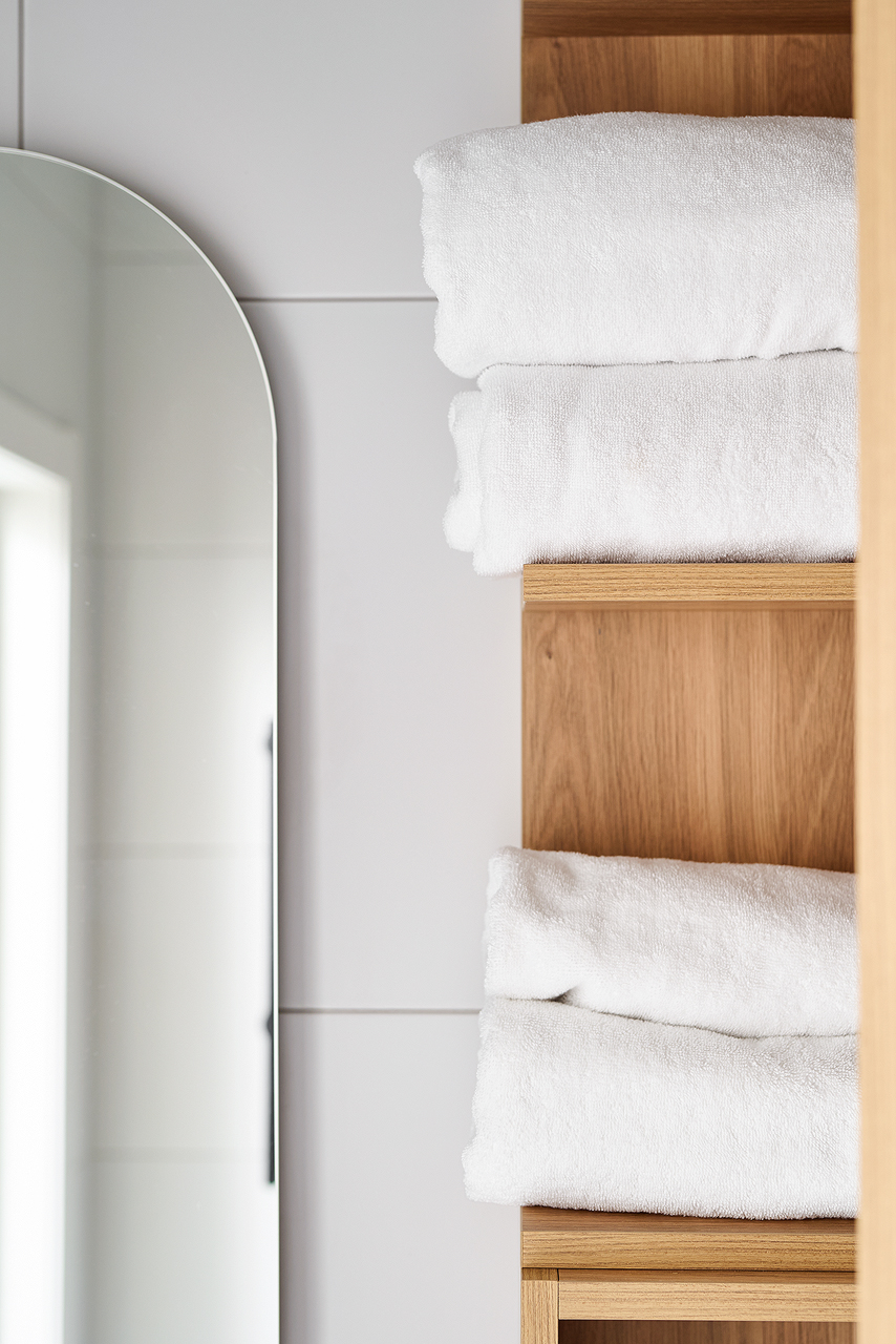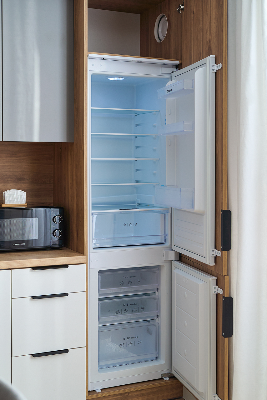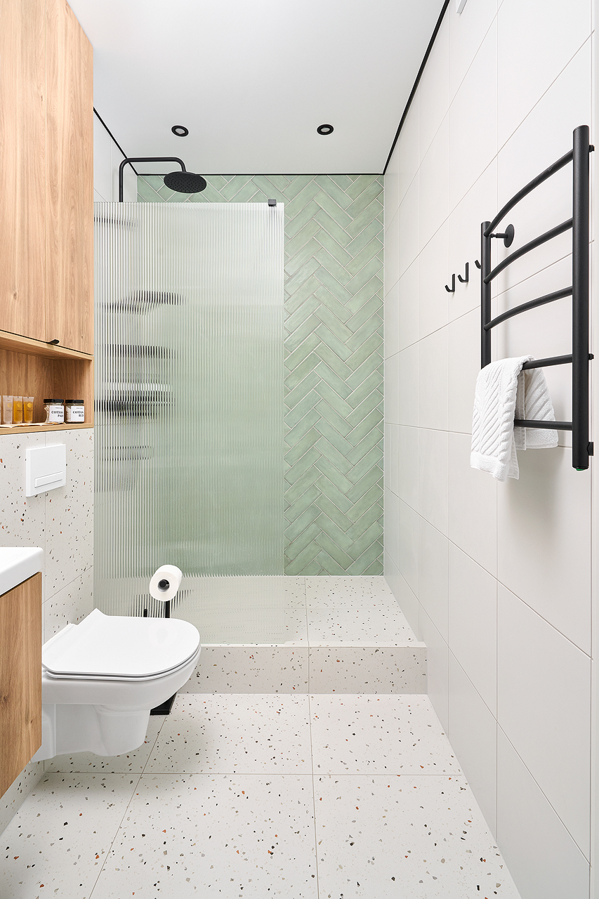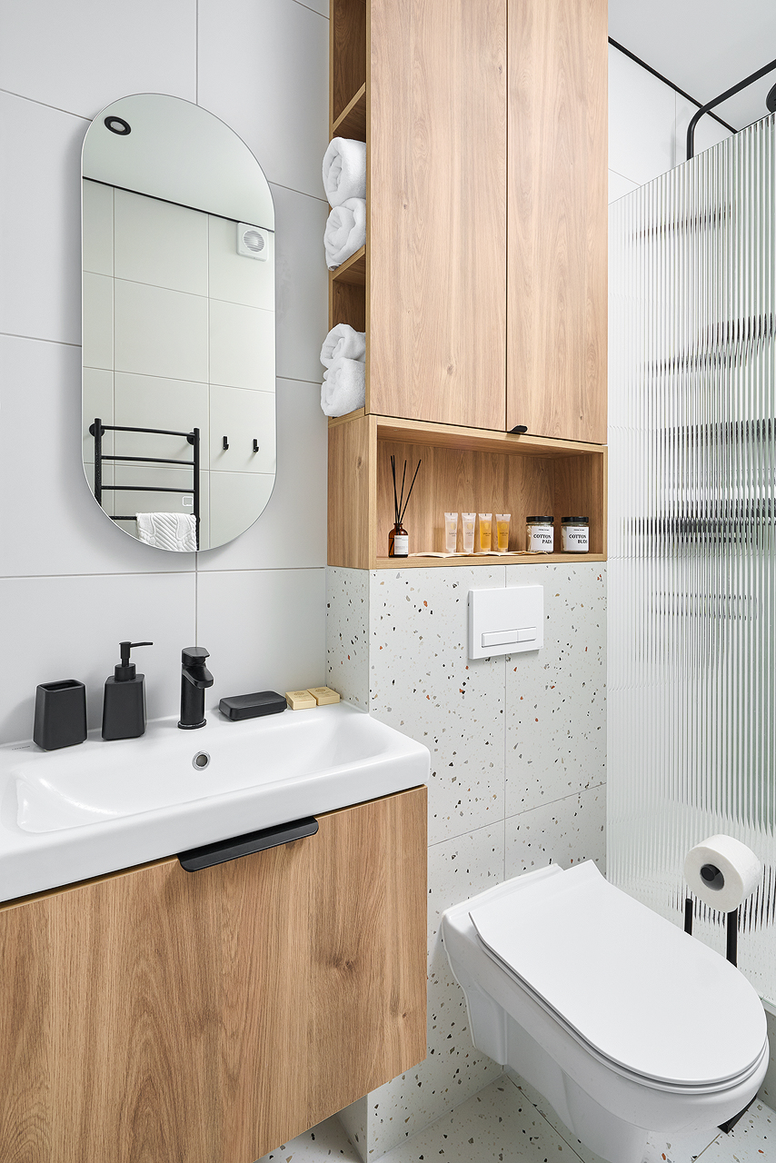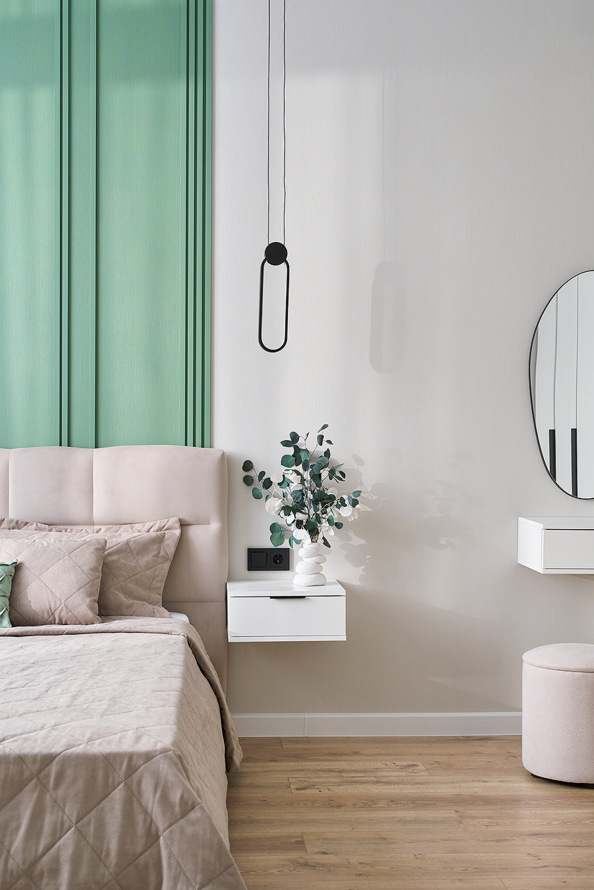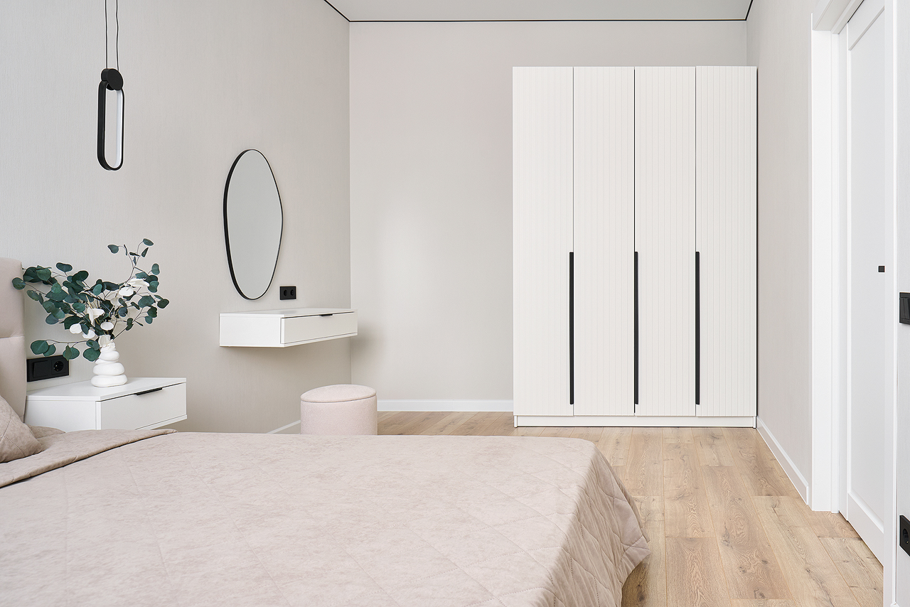 Просторная 1-комнатная квартира (47 м²) с большим балконом и тихим видом во двор. Интерьер в натуральных тонах дерева с оливковыми акцентами создаёт атмосферу уюта и отдыха.